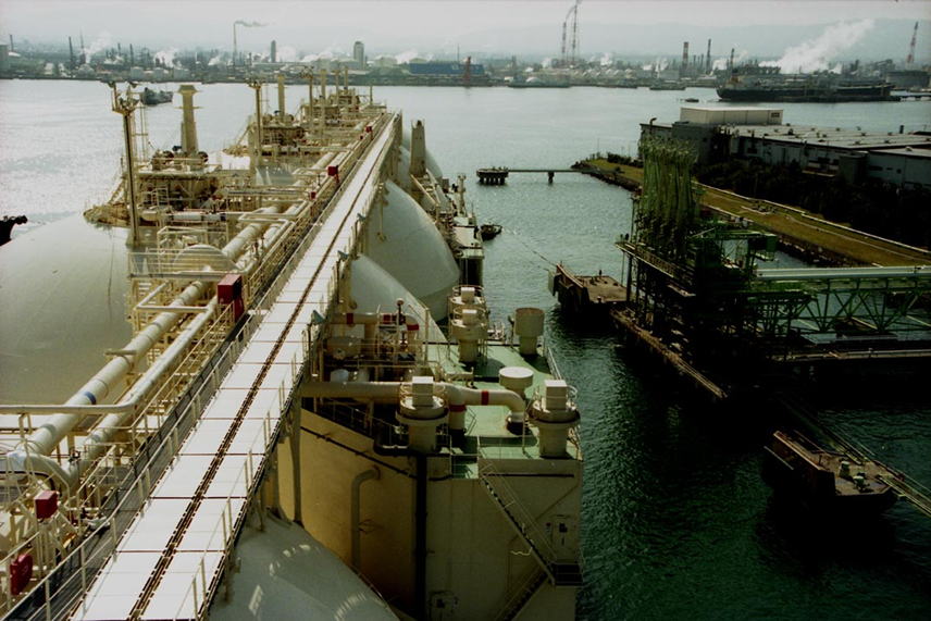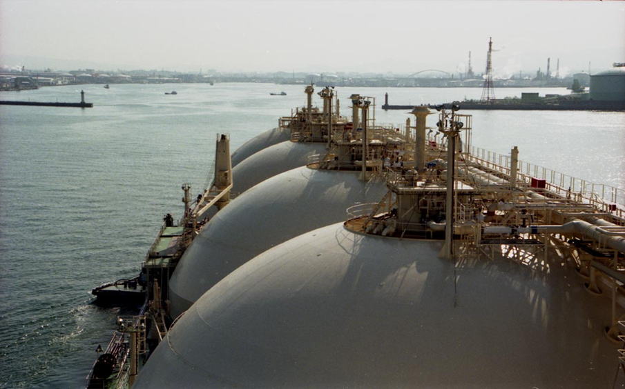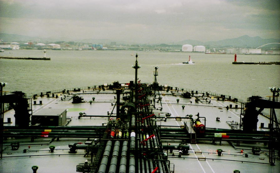 大阪ガス入港するLNG船。毎秒Max8センチ以下で着桟。通常は毎秒6センチ以下。